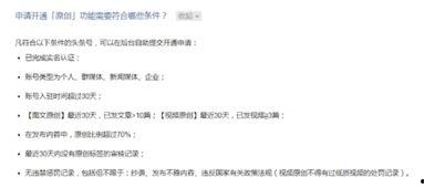 首先,你得知道,想要在头条上申请视频原创,可不是那么容易的事情。官方可是有一套严格的审核标准的。比如说,你的视频内容必须要有一定的原创性,不能是简单的搬运工,更不能抄袭别人的创意。这就要求你在制作视频的时候,得有自己的想法和风格。